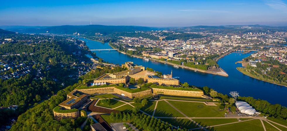 Weiter im engen Rheintal führt die Route zunächst bis Boppard. Hier geht es turbulent zu, Sie können aber auch mit dem Sessellift zum Vier-Seen-Blick in waldreiche stille Höhen entfliehen. Oder besuchen Sie Schloss Stolzenfels, ein Prachtstück preußischer Rheinromantik, auf dem weiteren Weg bis zum Deutschen Eck in Koblenz.