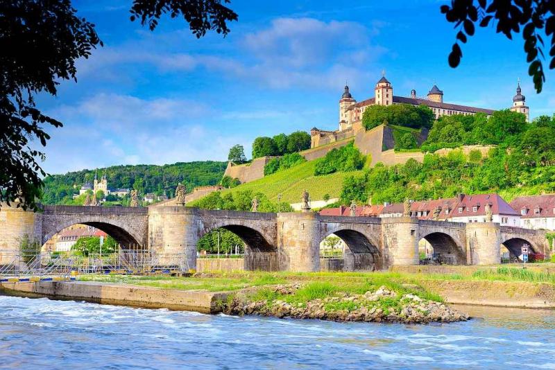 Die Abschnitte ab Haßfurt sind landschaftlich vom Weinbau geprägt. Kleine, romantische Winzerdörfer, ausgedehnte Rebberge und Obstgärten sowie grüne Mainauen säumen den Mainradweg. Landschaftlich sehr reizvoll ist die Fahrt durch die Volkacher Mainschleife. Im Schatten der Flussauwälder führt Sie der Radweg direkt entlang des Mains in die pulsierende Stadt Würzburg mit ihren zahlreichen barocken Sehenswürdigkeiten. Ein beeindruckendes Wahrzeichen der Stadt ist die alte Mainbrücke mit ihren 12 großen Sandsteinfiguren, die seit mehr als 200 Jahren ein Zeichen für die Multikulti-Gesellschaft setzt.
