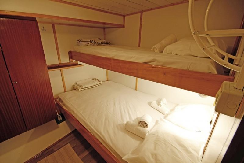 • 4x Dreibettkabinen mit französischem Bett und einem dritten Bett darüber